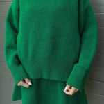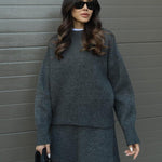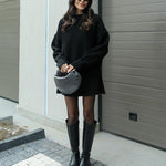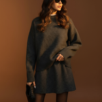 Haljina Marina savršena je kombinacija jednostavne elegancije, udobnosti i modernog oversized kroja. Izrađena od mekane, kvalitetne pletene tkanine, pruža toplinu i savršen pad bez gubitka ženstvenog oblika.